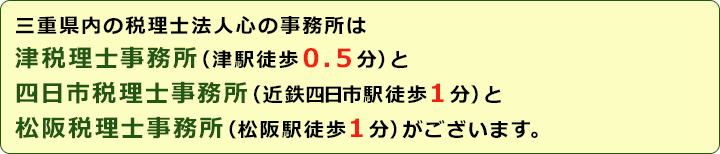 当法人は三重県内の津・四日市・松阪に事務所を設置しており、いずれも最寄り駅から歩いてお越しいただける利便性のよい立地にあります。